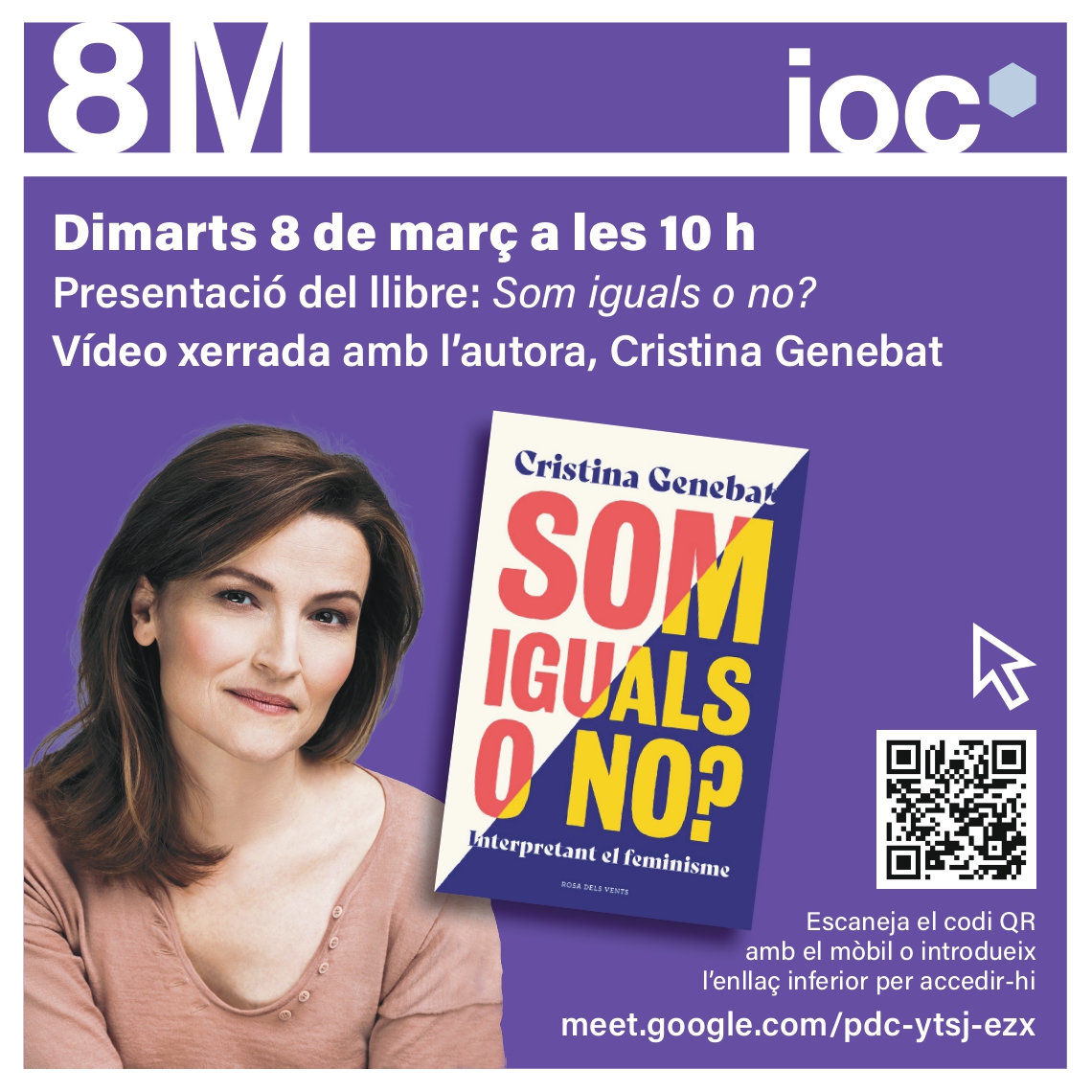 - A les 10 del matí, s’ha realitzat una vídeo xerrada amb Cristina Genebat, autora del llibre “Som iguals o no?” amb molta participació com es s’observa en la captura de pantalla. Informada prèviament en cadascun dels estudis i per twitter.