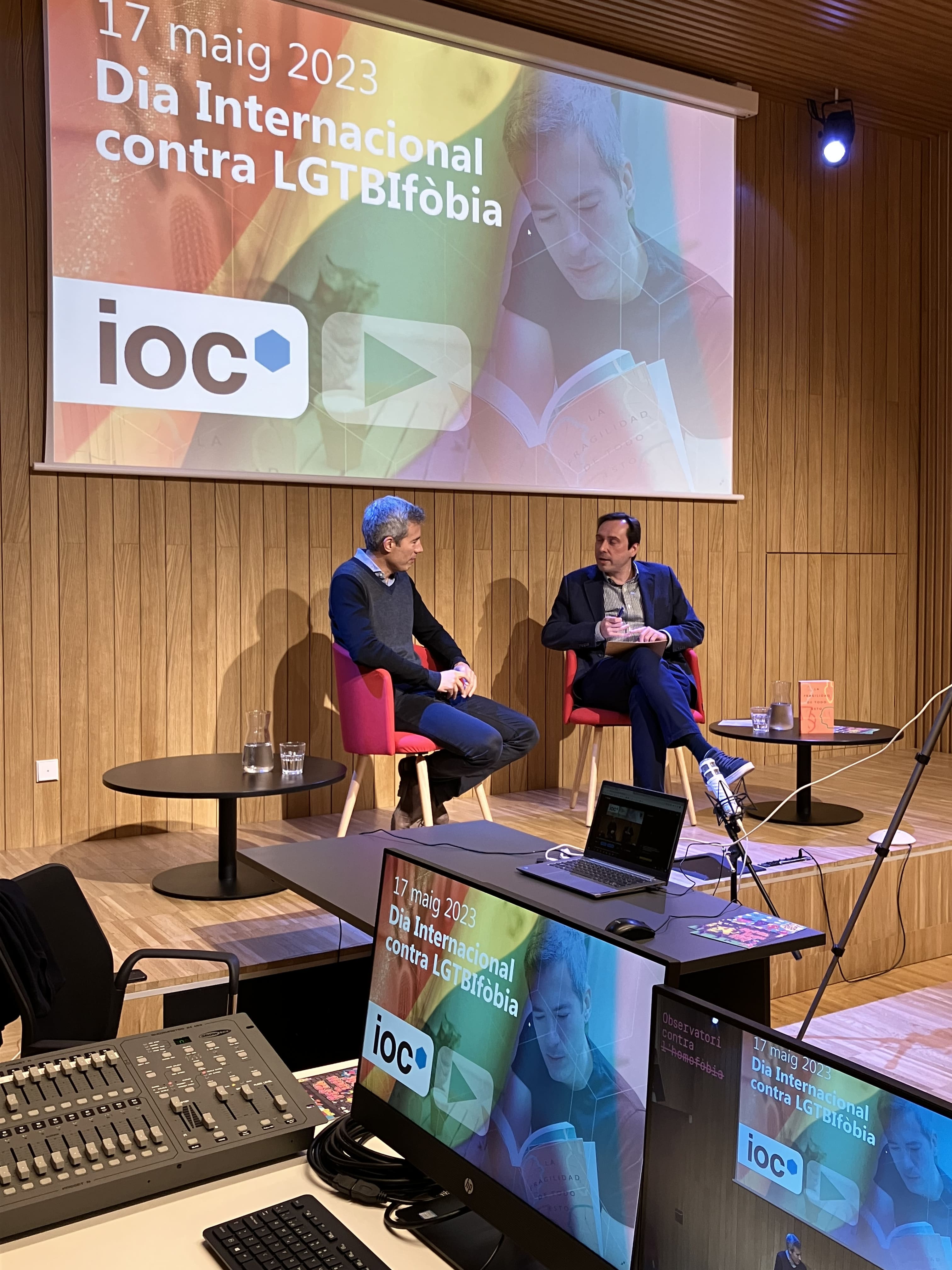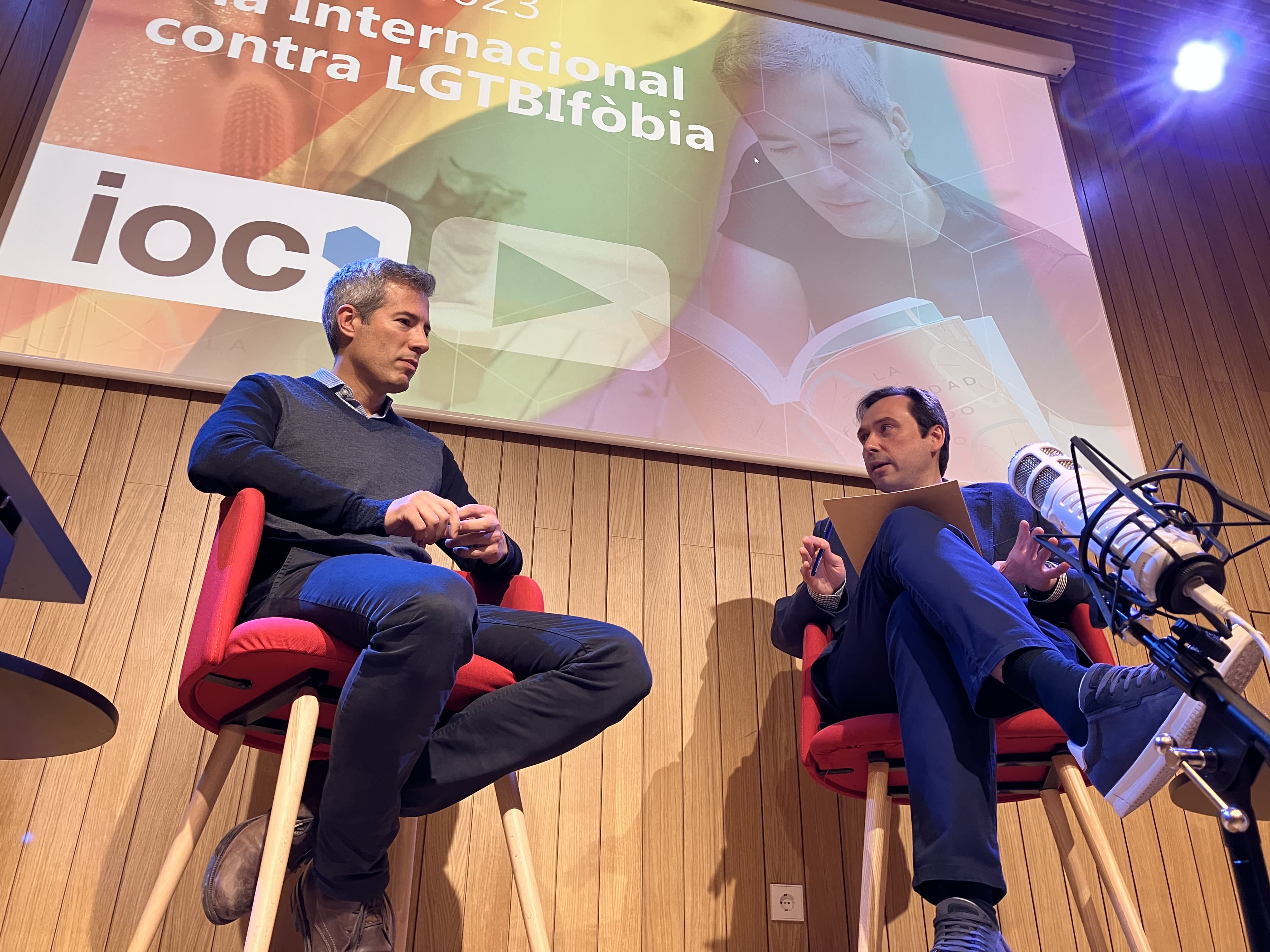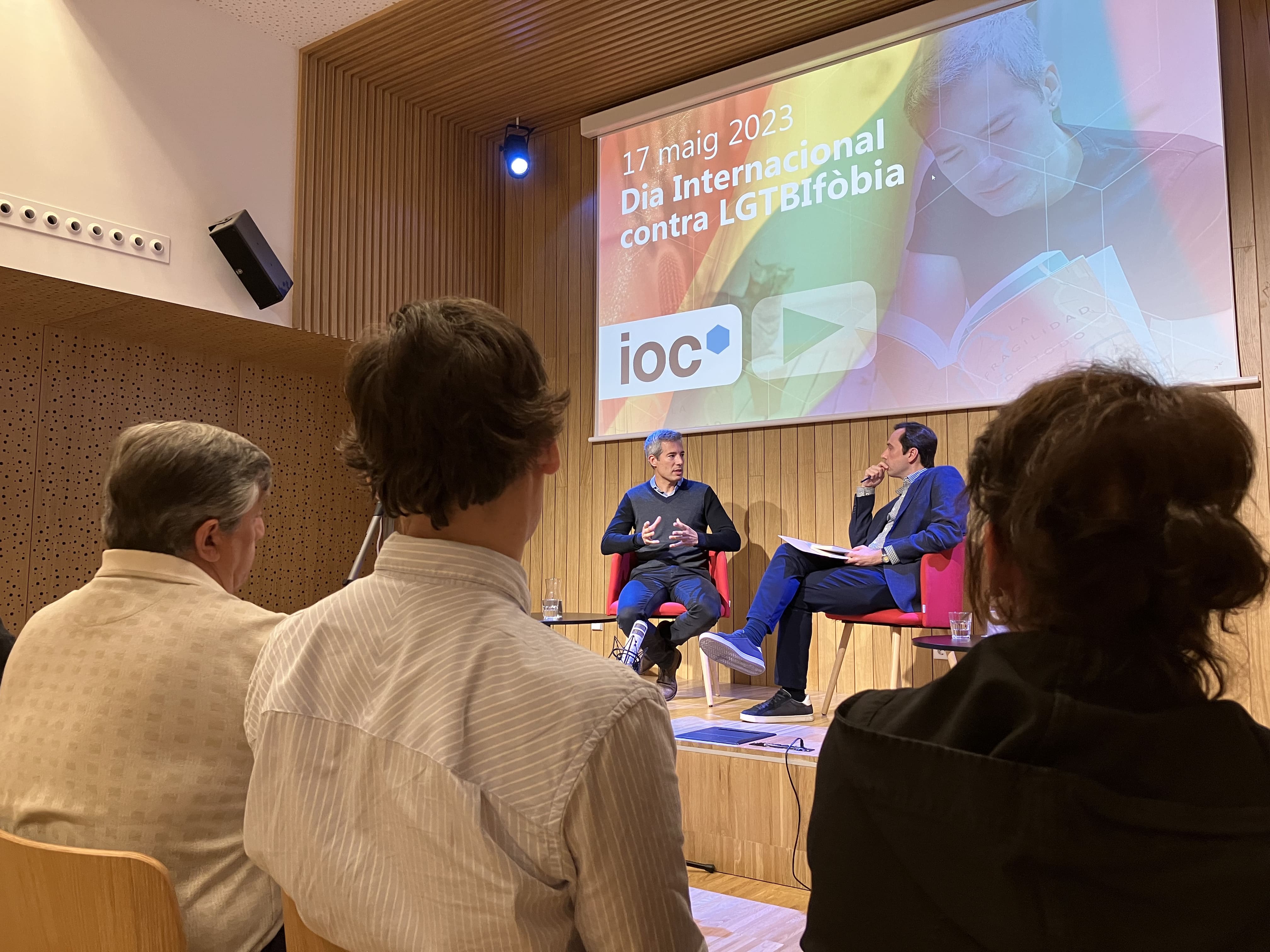 El proppassat 17 de maig de 2023 vam commemorar el dia contra l’LGTBIfòbia amb l’Oriol Nolis des del centre LGTBI de Barcelona. Allà, el professor de l’IOC, Pere Poy, va mantenir una conversa amb l’escriptor i periodista Oriol Nolis, actualment director de RTVE a Catalunya, el qual, compagina la seves tasques professionals amb l’exercici de difusió de la causa LGTBI amb voluntat d’aportar el seu exemple i consell a la societat.