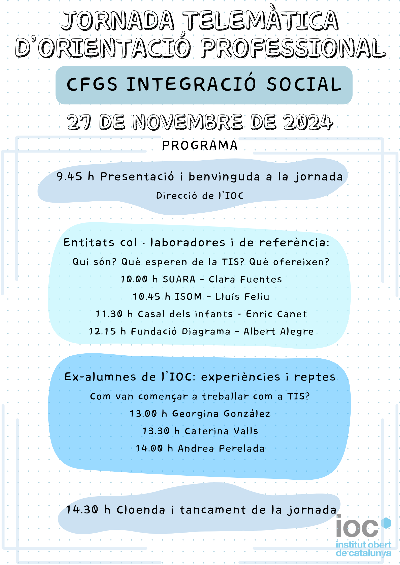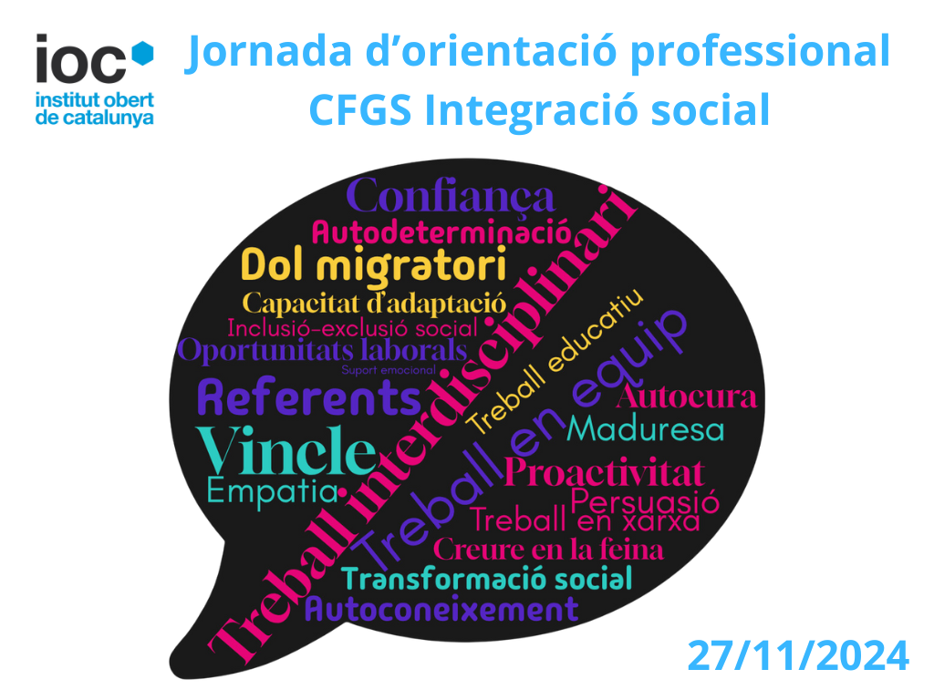 El passat 27 de Gener va tenir lloc la Jornada telemàtica d’orientació professional adreçada a l’alumnat del cicle formatiu d’Integració Social de l’IOC.