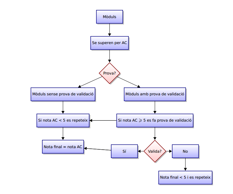 - Per superar un mòdul has d'haver realitzat amb aprofitament totes les activitats d'avaluació contínua i han de ser de qualitat. La qualificació final del mòdul serà l'obtinguda al llarg del trimestre.