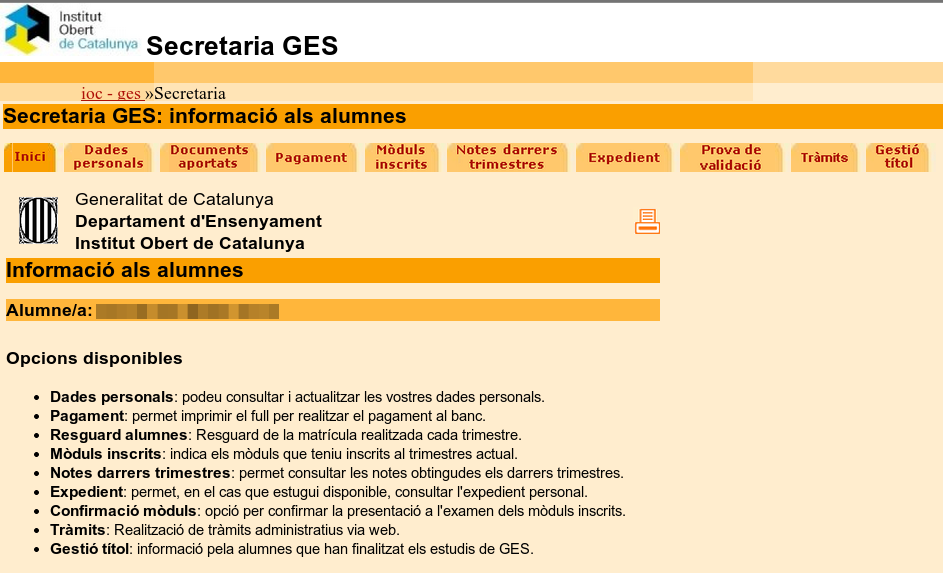Pestanyes de la Secretaria GES