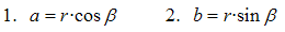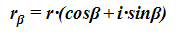Si coneixem la forma polar, rβ , l'escena ens mostra que s'obtenen les següents fórmules per obtenir la forma binòmica: