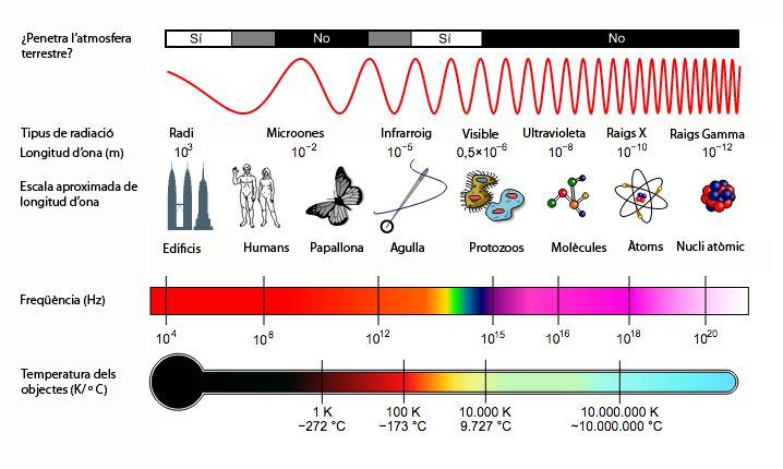 La llum és un fenomen físic de radiacions d’ones electromagnètiques, les quals podem classificar segons (vegeu la figura):