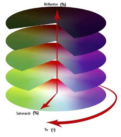 - La lluminositat (brillantor): defineix les diferències de quantitat de llum d’un color, que va de més clar a més fosc.