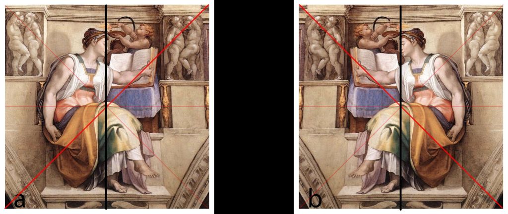 Malgrat aquest condicionament biològic, preval la direcció de les forces visuals en el sentit d’esquerra a dreta a causa de la influència cultural determinada per l’escriptura. Per exemple, observant la composició invertida de l’obra de Miquel Àngel (vegeu la figura) podem percebre la tensió generada per l’asimetria compositiva que fa predominar un costat respecte a l’altre.