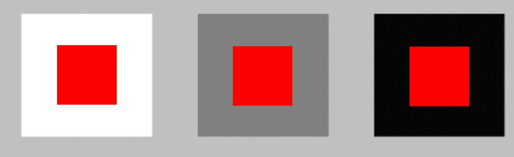 La percepció dels colors depèn del context en què es troba amb altres colors i, per tant, el mateix color pot canviar de to o brillantor en funció del color juxtaposat. Per exemple, el color d’un objecte vermell es pot percebre diferent en funció del color de fons que tingui. A la figura podeu observar que el mateix color del quadrat es percep més clar o més fosc en funció del quadrat de fons. També varia la mida amb relació al color: si és més clar respecte al fons, es percep més petit, i viceversa.