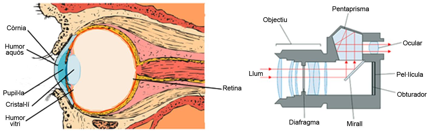 “L’ull equival òpticament a la càmera fotogràfica normal, té un sistema de lents, un sistema d’obertura variable (la pupil·la) i una retina que correspon a la placa fotogràfica sobre la qual s’impressionen les imatges. El sistema de lents de l’ull està format per: