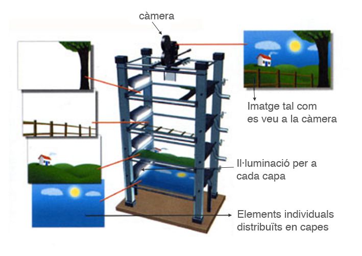 L’animació 2D per ordinador és una animació que per naturalesa és plana, com el cinema, la fotografia i la televisió, però això no vol dir que no intenti donar la sensació de tridimensionalitat (vegeu la figura).