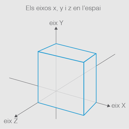 L’animació CGI 3D es fonamenta en els eixos X (amplada), Y (alçada) i Z (profunditat) en un escenari tridimensional. És una animació que crea objectes en tres dimensions.