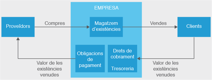 El moviment de les existències que són objecte de compravenda sense passar per cap procés de transformació es pot representar esquemàticament com es mostra en la figura: