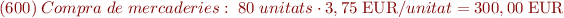 - El 4 de gener realitza una compra a crèdit a l’empresa BETA de 80 unitats del producte A a 3,75 EUR/unitat.