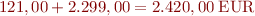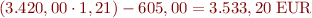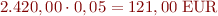 - El valor net realitzable de les mercaderies és un 5% inferior al valor de de les existències finals (2.370 EUR), i el valor net realitzable d’envasos i embalatges és un 3% superior al valor de les seves existències finals (420 EUR i 630 EUR respectivament).