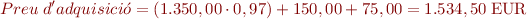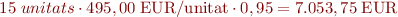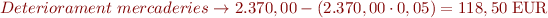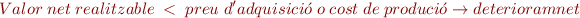 - Al ser el valor final de les mercaderies un 5% inferior al seu valor net realitzable tenim una possible pèrdua que s’haurà de registrar. L’import del deteriorament serà la diferència entre el valor final de les existències i el seu valor net realitzable: