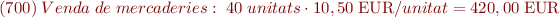 - El 5 de gener realitza una venda a crèdit a l’empresa GAMMA de 40 unitats del producte A a 10,50 EUR/unitat.