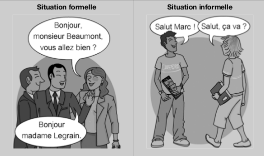 L’usage du “ vous ” de politesse est plus fréquent en France que chez nous: on vouvoie quand on ne connaît pas une personne, quand celle-ci est plus âgée ou quand il y a une relation de hiérarchie. Le vouvoiement indique respect ou distance. Les relations personnelles dans les entreprises étant de plus en plus directes, la tendance est au tutoiement mais, en situation de travail, préférez le vouvoiement si vous ne connaissez pas bien votre interlocuteur. On tutoie les amis mais on vouvoie les collègues.