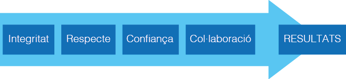 | Compromís per l’excel·lència | Ambient relaxat i productiu | Cooperació i suport | Valors morals positius |