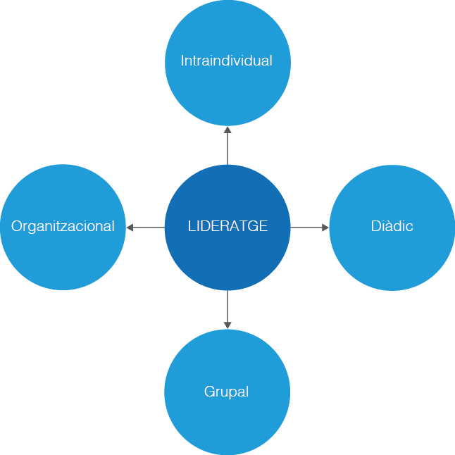 - Diàdic: referit a la relació entre el líder i l’individu, normalment un seguidor; un clar exemple el tenim en els influencers. Les claus són el desenvolupament d’una relació de cooperació i confiança entre els dos. El problema en aquest cas és que habitualment l’entorn no queda gaire considerat.