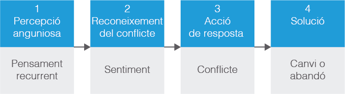 - Percepció anguniosa / Pensament recurrent: fa referència a quan les diferències comencen a crear-se, però el treballador no s’ho pren seriosament, i se sol dir “no passa res”. És una mena d’autoengany.