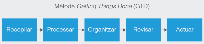 Getting Things Done (o GTD) és un mètode senzill de gestió de les activitats, i podria traduir-se per ‘obtenir les coses fetes’ o ‘resoldre les coses’. Es basa en cinc passes (vegeu la figura):