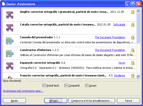 L’ajuda en línia està formada pels mecanismes inclosos en la mateixa aplicació, de manera local o remota mitjançant Internet. Es tracta del següents: