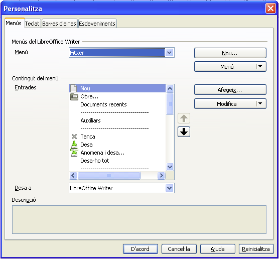 - Ajudes de context: quan l’ajuda es contextualitza segons el lloc on apunta el ratolí.