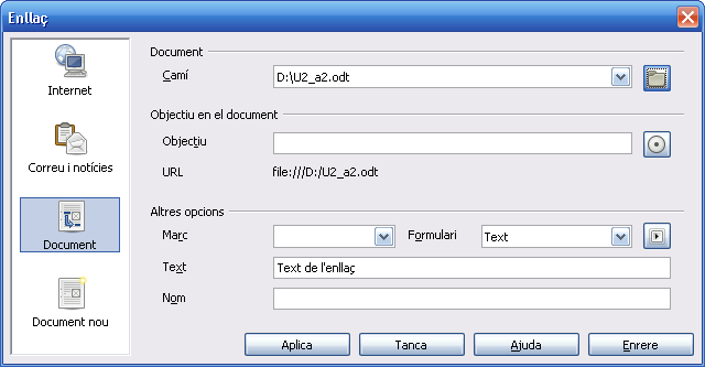 - Enllaços… permet editar els enllaços del document actual cap a altres documents.