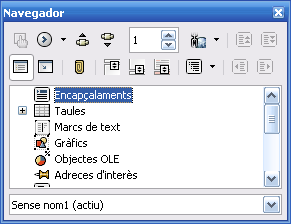 - Barra d’eines configura quines barres d’eines voleu que es mostrin i quines no. Activant les diferents opcions, es mostren barres d’eines flotants o incrustades. Per moure la barra d’eines es pot fer el següent: