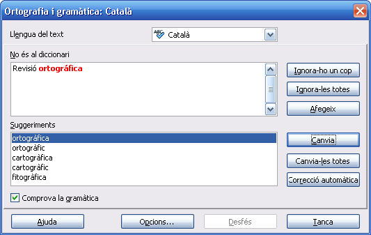 - Accepta o rebutja… permet decidir, per a cada canvi, si s’incorpora o no al document original.