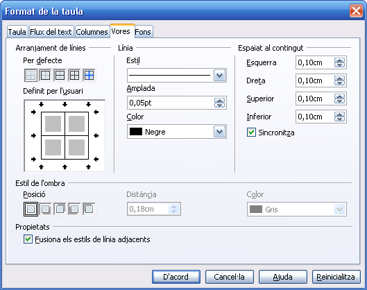 Algunes de les dades interessants les podeu consultar o introduir al quadre de diàleg Propietats (figura), a les pestanyes següents: