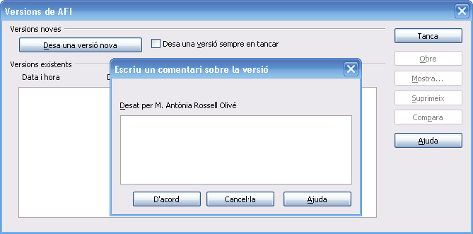 - Versions… fa possible obrir i desar, en un sol fitxer, un document que té diferents versions.