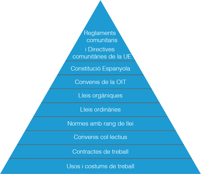 - Constitució espanyola. Preval sobre la resta de lleis. Regula els drets bàsics dels treballadors i dels empresaris.