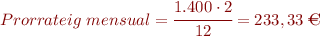 Aquest prorrateig s’afegiria al seu salari base: 1.400,00 + 233,33 = 1.633,33 euros.