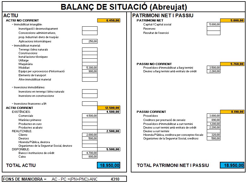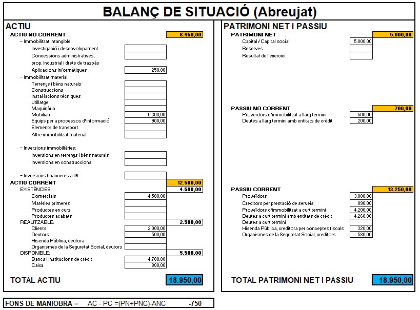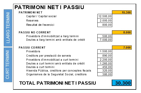 | Immobilitzat | 200.000 | Patrimoni net | 240.000 |