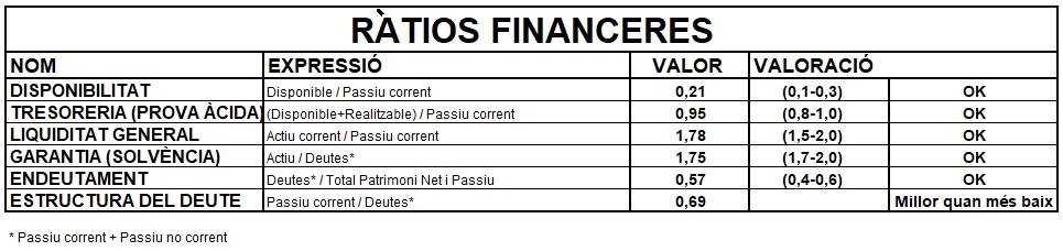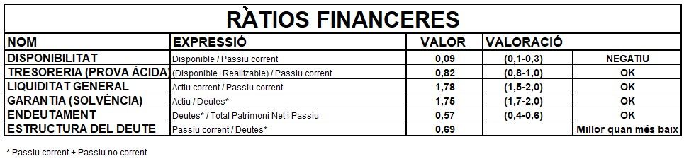Balanç i ràtios financeres: