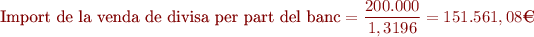 Calculeu l’import de la compra per a l’empresa si el pagament es fa per una transferència instrumentada en un compte bancari en euros, en què la comissió és d’1,5