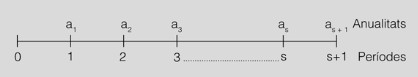 - n0, n1 , ……, nn = instant de temps en què es fan efectius els termes d’amortització.
