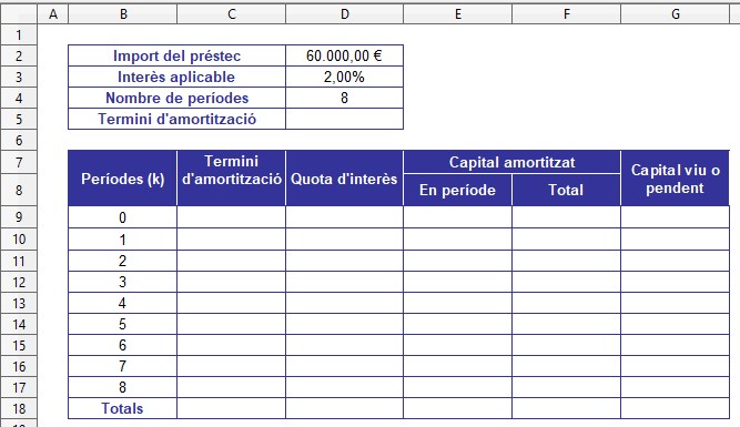 Per a l’estudi dels préstecs, considerarem el tipus d’interès i el temps constants.