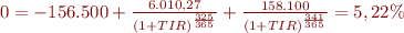 - Plantegeu la TIR fórmula i inseriu un full de càlcul amb els càlculs.