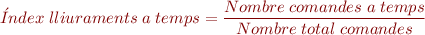 - Lliuraments a temps. Mesura el percentatge de comandes que s’han rebut en el termini establert: