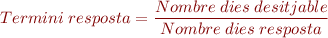 - Termini de resposta. Mesura la capacitat dels proveïdors per posar a disposició del seu client la informació necessària. Es calcula dividint el termini de resposta esperat entre el termini de resposta real: