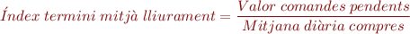 - Índex del termini mitjà de lliurament. Indica els dies que triguen els proveïdors a servir les comandes: