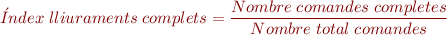 - Lliuraments complets. Mesura el percentatge de comandes que s’han rebut en la seva totalitat i sense errors: