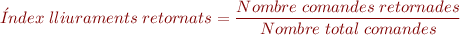 - Lliuraments retornats. Mesura el percentatge de lliuraments que l’empresa ha rebutjat:
