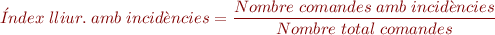 - Lliuraments amb incidències. Mesura el percentatge de comandes que s’han rebut amb incidències: