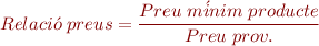 - Relació de preus. Expressa la relació entre el preu proposat pel proveïdor i el preu mínim del producte en el mercat: