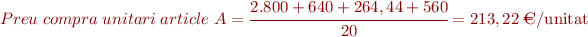 - 20 taules (referència ZZZ), amb un pes per unitat de 20 kg i un preu de compra unitari segons factura de 140 €