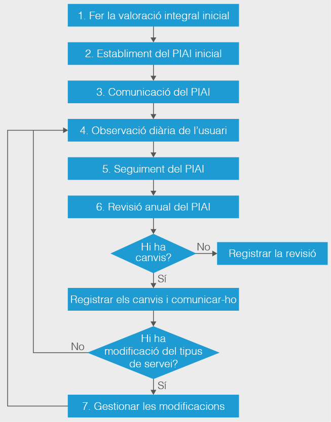 El PIAI o PAI és el document on es recullen totes les actuacions destinades a la culminació d’una atenció integral i personalitzada de l’usuari.
