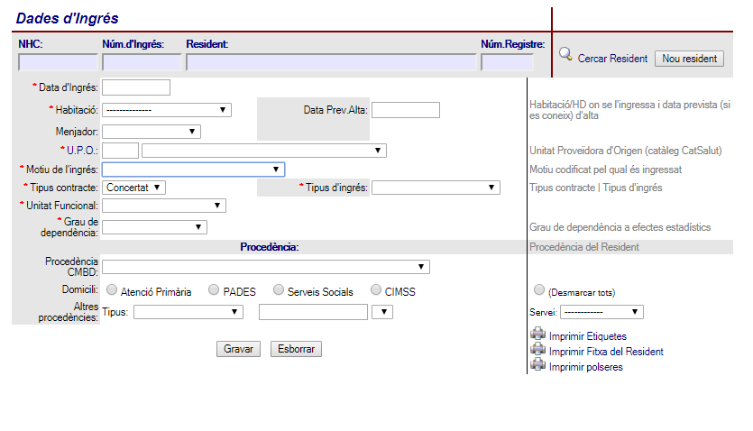 Els programaris de gestió actuals permeten registrar diferents aspectes de gestió econòmica, gestió organitzativa, gestió dels usuaris, etc. Per exemple, en relació amb l’usuari, contenen fitxes de preingrés (vegeu la figura), de dades personals (vegeu la figura) o d’ingrés (vegeu la figura). També contenen tota la informació relativa a la gestió econòmica.