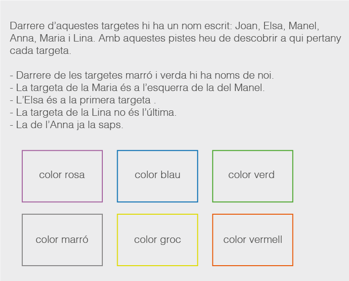 Es pot augmentar la complexitat de la tasca demanant que identifiqui d’altres aspectes:
