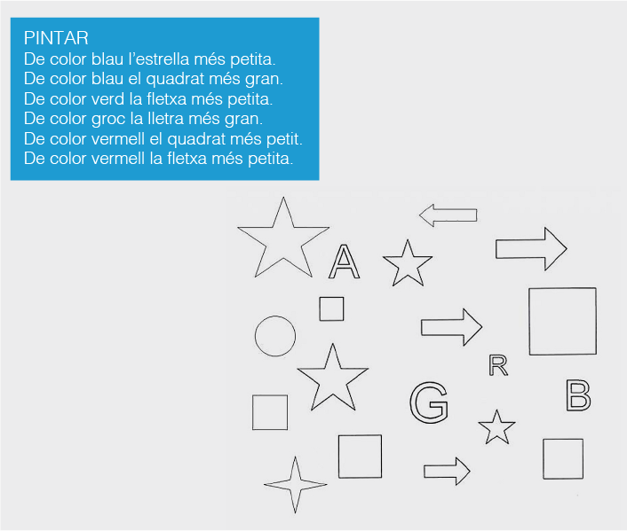 Instruccions: es facilita a la persona usuària la làmina amb les figures geomètriques i se li demana el següent: